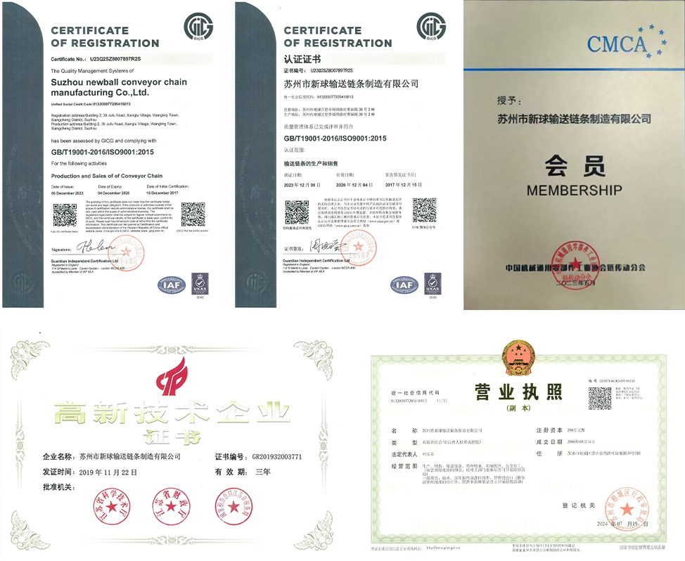 Suzhou Xinqiu Conveyor Chain Manufacturing Co., Ltd. is a professional manufacturer of large-scale production of conveyor chains and special chains Main products: double speed chains, conveyor chains, pallet chains, plate chains, hollow chains, suspension chains, as well as various specifications of special chains, sprockets, etc.