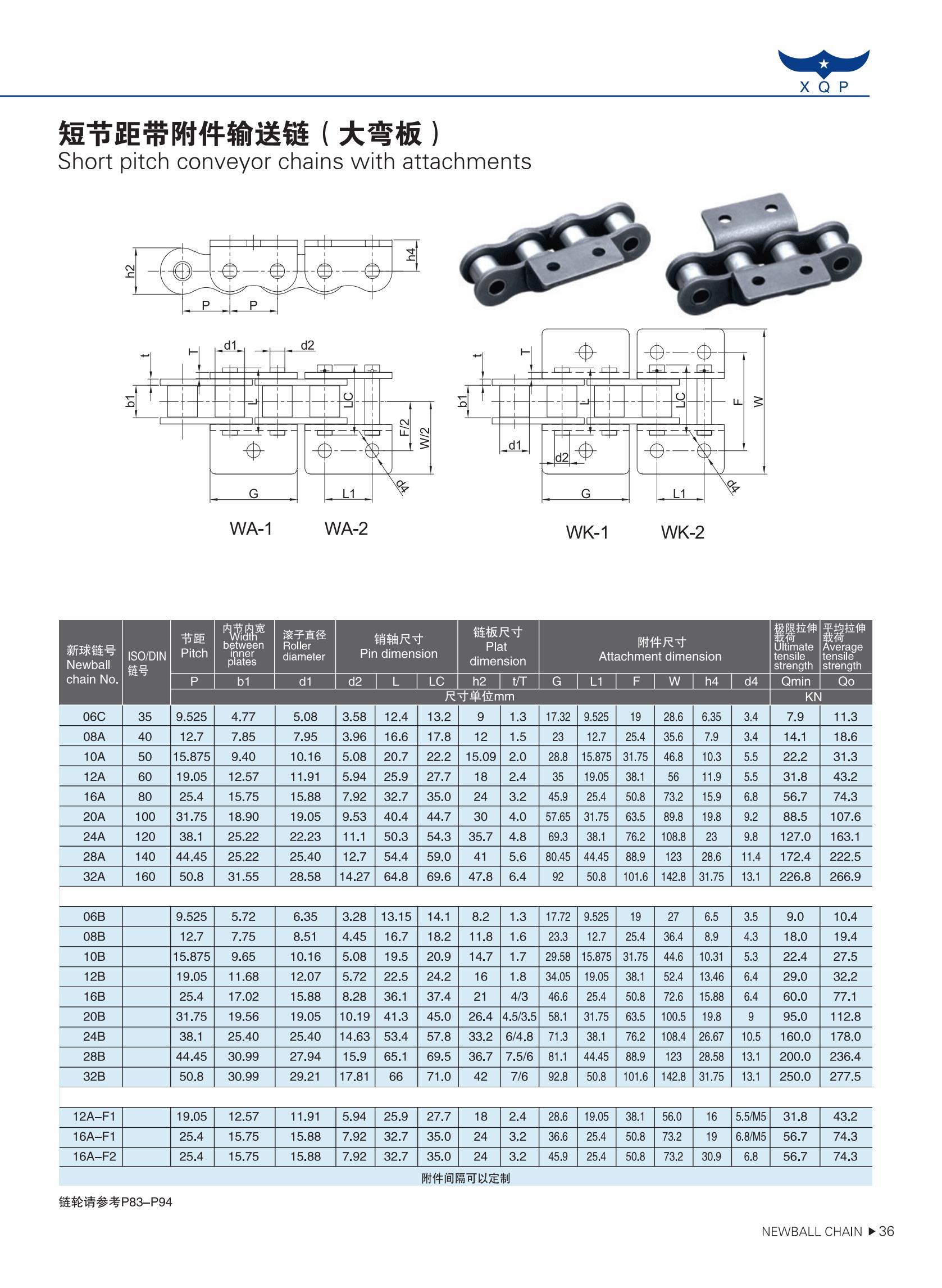 短节距带附件输送链
